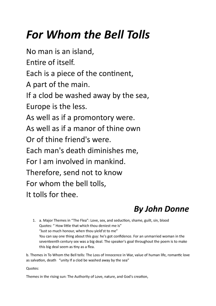1. Yes, indeed. Thank you, Bill. I take little credit for it as it is Donne’s poem that has stuck with me for so many years. I was inspired to share the original with my CW club today. They seemed equally inspired to write their own bell imagery. Dinging the bell in victory now. 😀