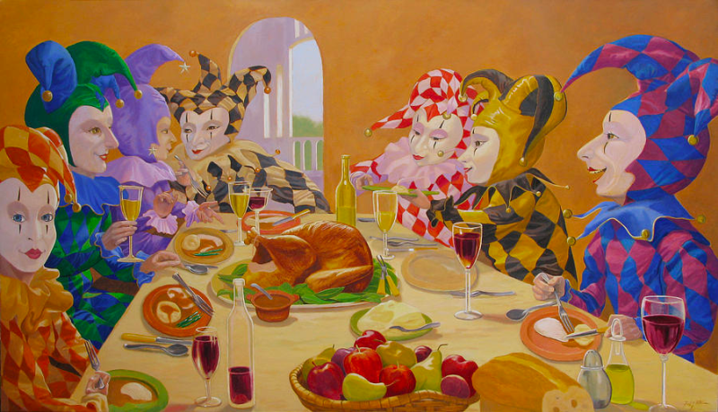 It was an unprecedented Thanksgiving that year. By decree of the Lord and Lady of Leftovers, all of the politicians of the capital, including the President and his cabinet, donned their jester caps and costumes and embarked on a quest to discover the fool within themselves. They spent the afternoon telling jokes, entertaining, and portioning leftovers into recyclable take-away packaging that was then personally handed out to each citizen attending the festivities.
